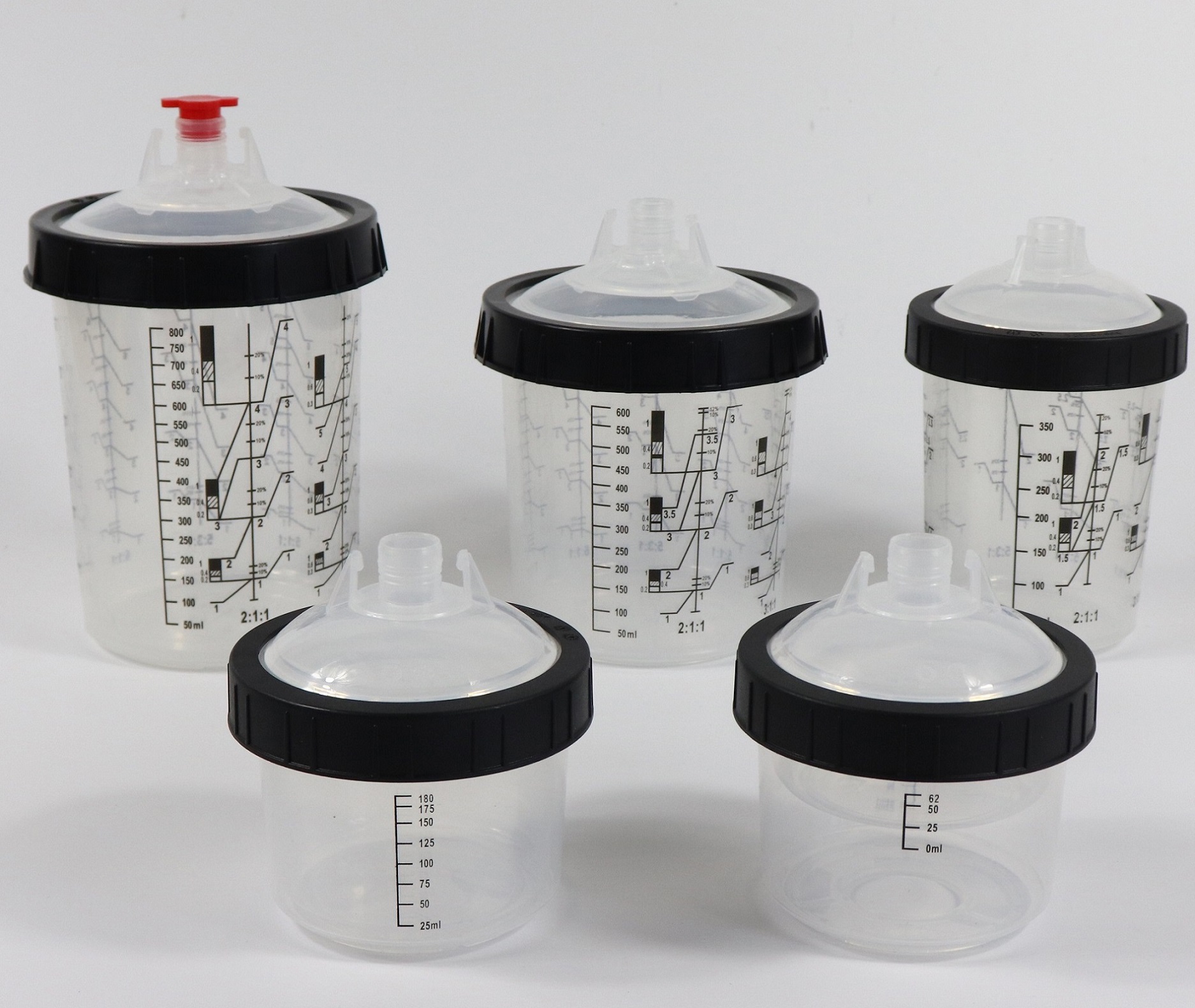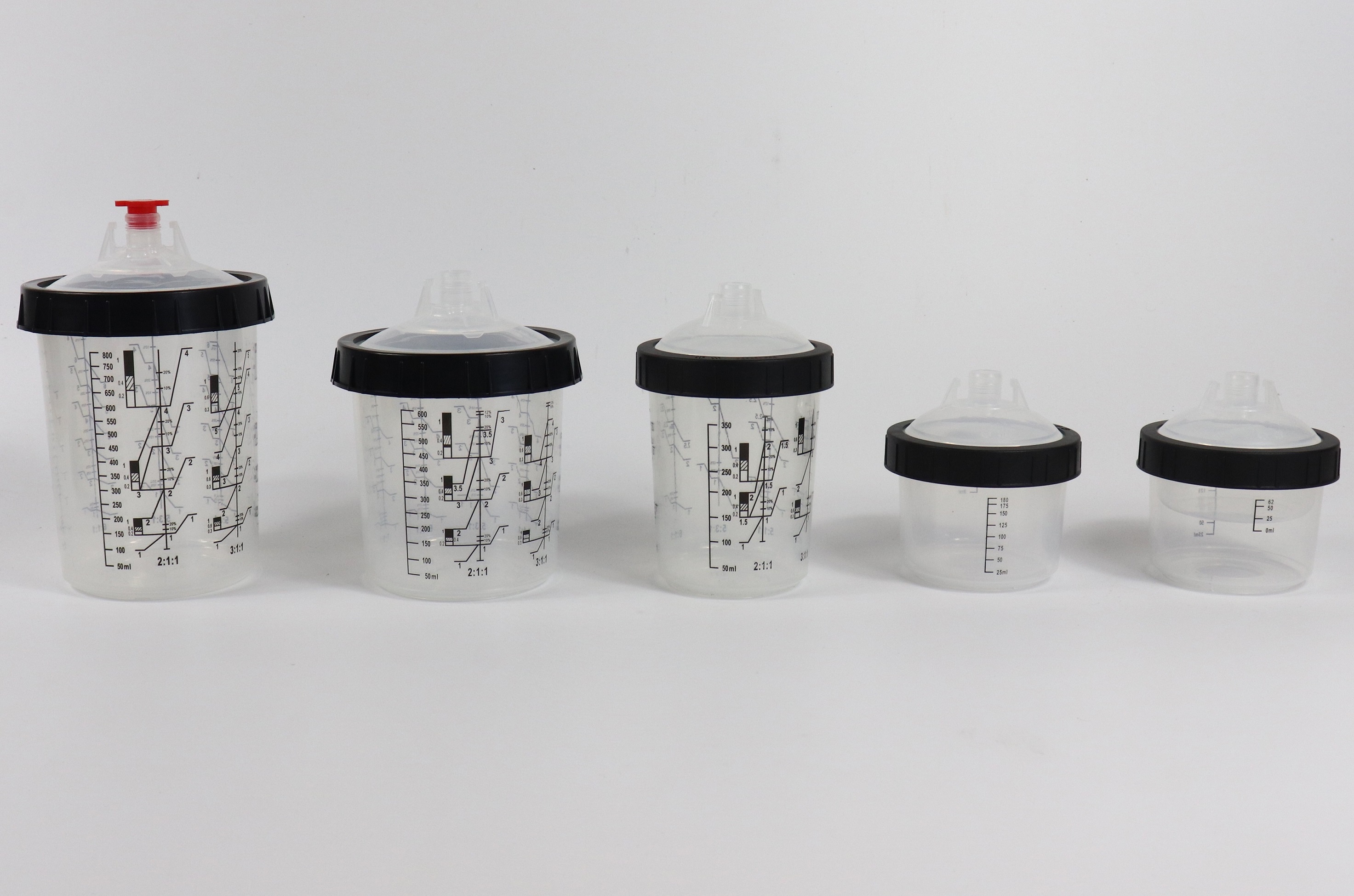 Carich spray gun paint mixing set is a full set disposable solution for measuring,filtering,mixing and spraying.It is a hard cup and collar set that supports the disposable flexible liner.Our cups and collars are available in various sizes to match all your needs for pain sprayer.Carich spray gun paint mixing cup allows the painter to spray andy angle even upside down,no matter how the part is positioned.This set makes material transer more consistent,limits paint overspray and reduces paint consumption,saves labour cost.